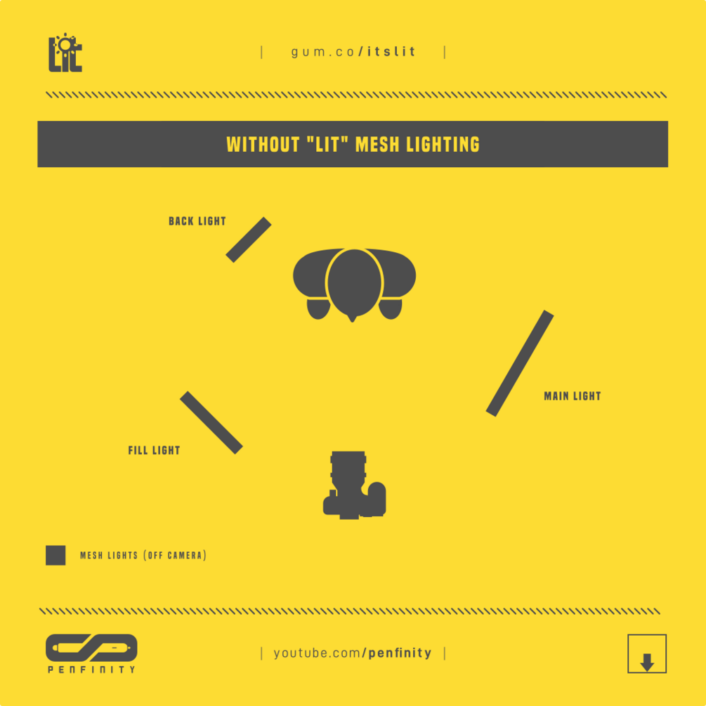 Now it's gone. With the lit lighting you don't have to care about that anymore it is just a matter of one slide and you good to go. It is specially crafted for fine tune control and the possibility to superpose multiple mesh lighting together to create stunning results.